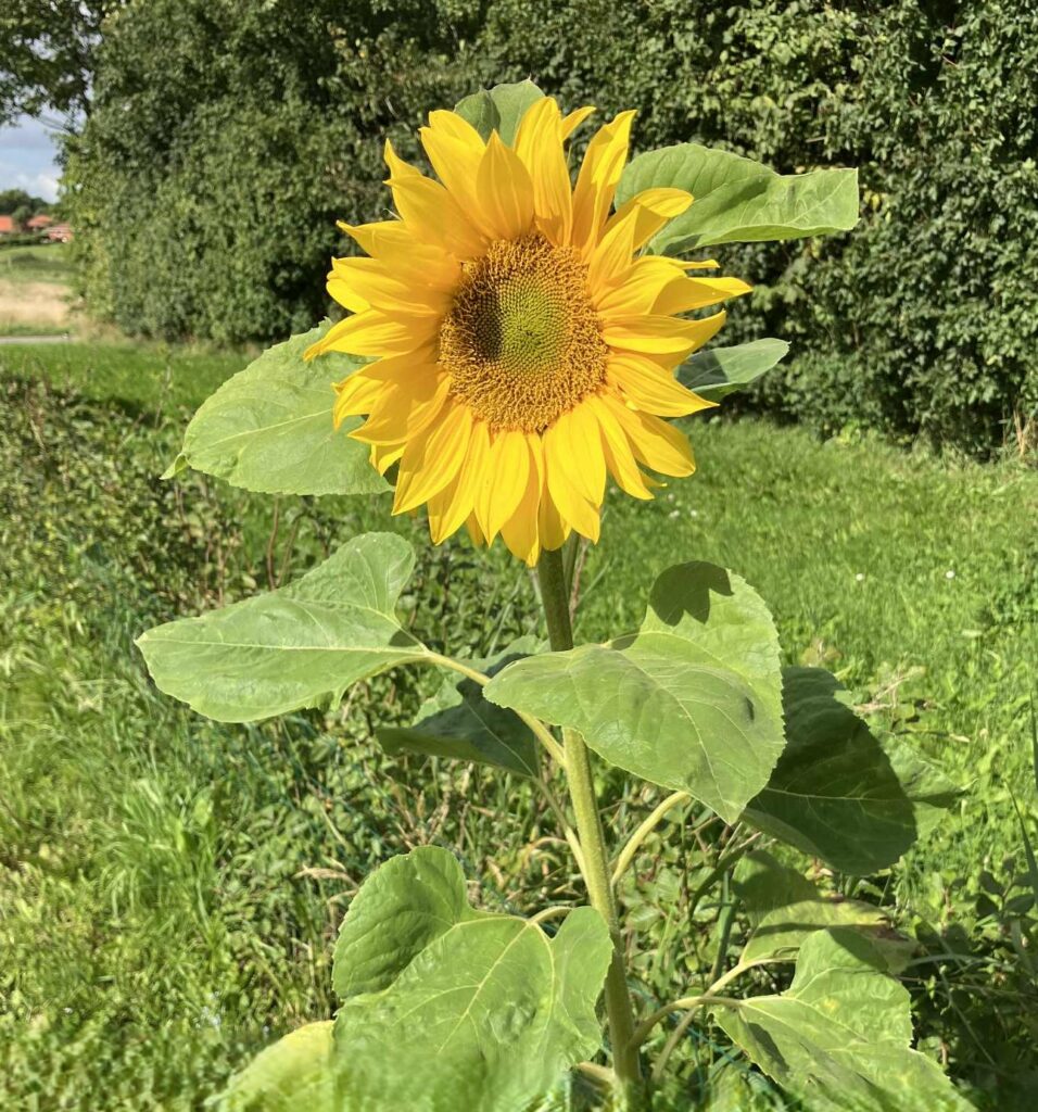 Solsikken har foldet sig ud. En fascinerende blomst – som begyndte sit liv som et lille frø i en lille potte – og nu stĂĄr meter høj i hækken, sammen med nogle andre. De er virkelig lyspunkter i haven.