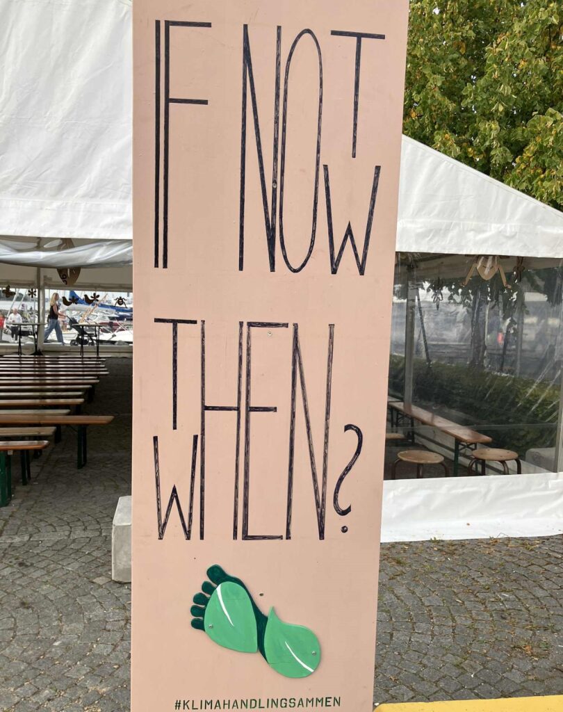 Endnu en gang har jeg været frivillig på Klimafolkemødet – en enkelt vagt i informationsboden. Det er et hyggeligt sted at stå, der kommer mange forbi, med spørgsmål om alt fra hvor spiser man til hvor er den store scene. Den scene, der lagde gulv til bandet Aphaca – et band jeg ikke kendte meget til, men det var der helt tydeligt mange andre der gjorde 🙂 De spillede i aftes og det var en god måde at slutte dagen af på, og vejret viste sig fra sin bedste side – over tyve grader og ingen vind – det var en perfekt sensommeraften.
