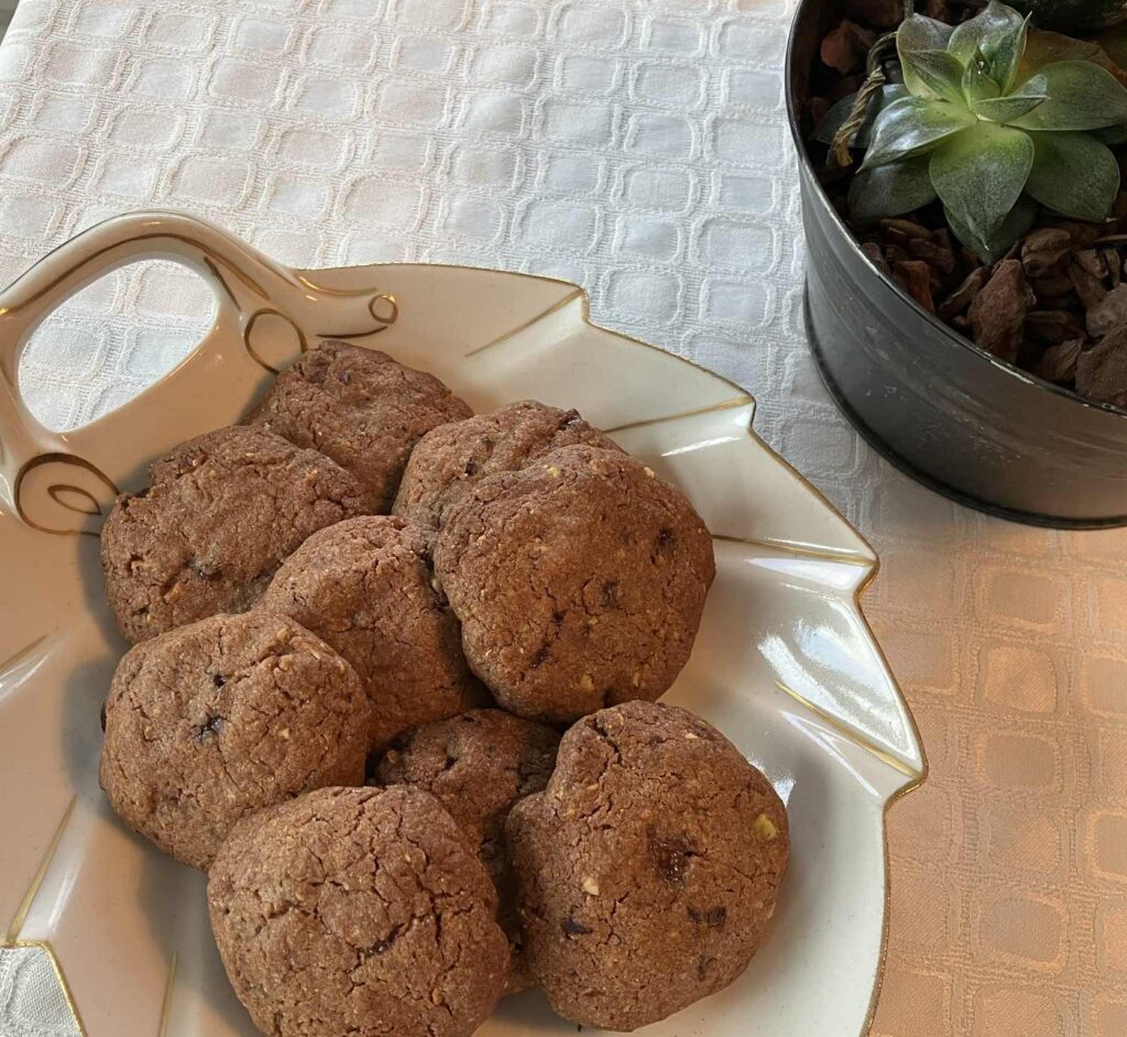 Valget faldt pĂĄ disse cookies – som blev lidt mere restecookies – der var noget forskelligt chokolade i skabet som fint kunne kommes i kagerne, sĂĄ det kom det. Noget af chokoladen var blevet lidt grĂĄ i overfladen, men det betyder ikke noget, nĂĄr det kommer i bagværk eller smeltes.