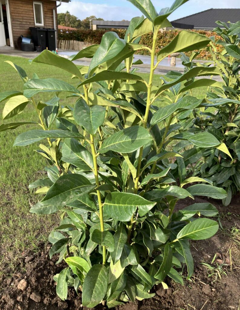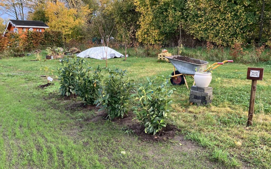 Laurbærbuskene var rimelig store og fyldte godt – så vi endte med at have fire i overskud. Nu står de på kanten til den vilde have. Og er med til at skabe lidt rum i haven. Alt hvad der rager lidt op er med til at bryde blikket og gøre det hele lidt mere interessant, så jeg er godt tilfreds med de nye planter. På sigt kan de også give lidt læ – og det er der ikke for meget af endnu 🙂