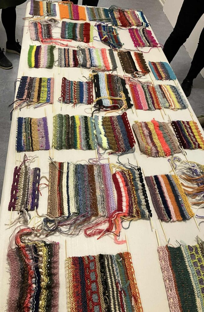 Vi sluttede aftenen af med at lave en lille fernisering, hvor alle de små strikkede klude blev udstillet. Og hvor var de forskellige 🙂 Men vi var jo også 30 forskellige kvinder, med hvor vores historie, der den aften havde fortalt noget af historien igennem strik.