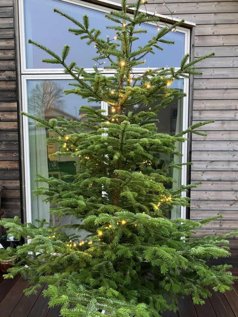 Langt mere jordnært er vores juletræ på terrassen 🙂 Træet er vi blevet givet – og det står fint, med afstand mellem grenene og rækker højt op mod himlen. Det må kortes lidt af, inden det kommer ind i huset den 23. december. Jeg glæder mig til at pynte træet. Det har tidligere været børnenes opgave, mens jeg var i kirke – men i år har jeg ingen gudstjenester, så der er god tid til at gøre klar – og pynte træ. Det bliver et glædeligt gensyn med meget gammelt julepynt.